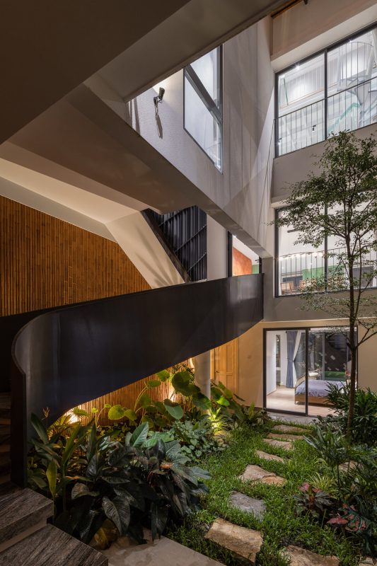 Một điều tuyệt vời nữa ở The TROPIC House là diện tích căn nhà tuy là nhà phố, nhưng sống bên cạnh nhà ba mẹ của vợ (nhà ngoại) nên góc sân được kêt nối với sân nhà bên. Một sự nương nhờ cộng sinh nhưng không ảnh hưởng lẫn nhau của cả một đại gia đình nhiều thế hệ Việt Nam